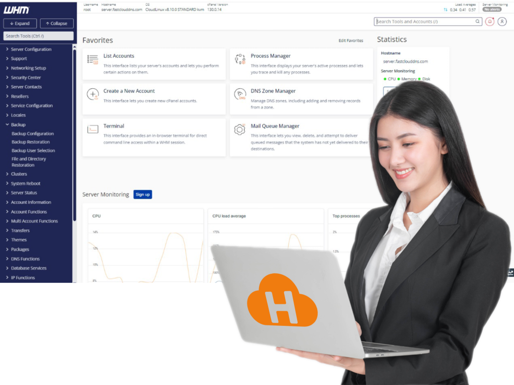 Effortlessly create and manage client accounts with cPanel and WHM.